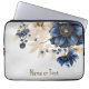 Monogram Namn marinblå gulvit Golden Blommigt laptop sleeve. Unik, vacker utformning av snyggten. Lätt att vara personlig. Teckensnittet stil, storlekt och färg kan ändras. Matchande objekt är tillgängliga.