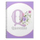 Ge till någon med namn som börjar med Q. Design innehåller mottagarens Monogram & Namn med blommor på båda sidor i vatten färg pastel stil. Initial är brev Q. Exempel är en presentanteckningsbok för Queenie.
