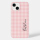 Rosa och White Gingham check plaid iphone case. Monogram det med namn eller initialer.