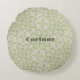 Monogram Namn Sage Grönt Mönster | Rund Kudde