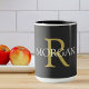 Personalisera denna svarta kaffekopp med din monogram och namn. Denna enkla klassiska design i guld och vit text kan också användas för ett företagsnamn och webbplats.