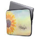 Denna blommigt laptop sleeve är dekorerad med en gult solrosolja. Det är lätt att anpassade med ditt namn och din ursprungliga version. Ursprunglig vattenfärg © Michele Davies.