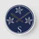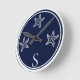 Monogram Nautical White Navy Blue Starfish Beach Rund Klocka