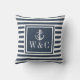 Monogram Navy Blue Stripe Nautical Anchor Kudde