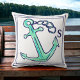 Monogram Navy Grönt Anchor Nautical Boat Kudde