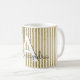 White & Faux Gold Foil Stripe Monogram och initial Coffee ir Tea Kopp. Kaffet eller Tea Kopp kan anpassas så att du kan ta med ditt första namn och första steg.