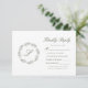 Denna bröllop-utformning har ett monogram av eleganten skript som inledningsvis är inramat av en oliv grönt bladkrans på en vit bakgrund. Orden "Kinly Reply" visas ovanför anpassadets oliv grönt text, som innehåller utrymme för ett alternativ för online OSA med URL för webbplats.