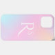 Monogram Ombre HoloGraph Rosa Girly Personlig Phone Case har en rosa och blå holografisk bakgrund med personligens monogram i mitten. Anpassa genom att redigera texten i textrutorna. Designad av ©Evco Studio www.zazzle.com/store/evcostudio