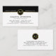 Cover features a black and white layered cover that is demarcated by a faux gold line. Sitting on the gold line is a gold circle that has your name initials-monogram inside. To the left of this is the business name with a slogan caption option in the opposite direction. Underneath the logo lies your prestigious name, the job title and the contact details near the base.