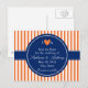 Monogram orange och vita ränder med kunglig blå meddelande vykort