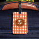 Monogram Orange och White Gingham Mönster Bagagebricka