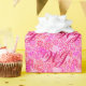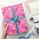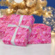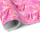 Omslagning papper i ett anpassade, två brev monogram - djup fuchsisk rosa mot blommigtens bakgrund i skuggor av pastellrosa