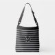 Modern monogram på svart och silver grått färg stripe Crossbody Bag. M brev kan vara personlig.