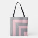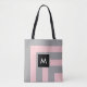 Elegant modernt monogram på lätt grått och rosa strimlade Tote Bag. Enkel utformning av eleganten än! Monogram endast på framsidan.