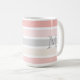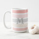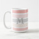 Monogram på den moderna Rosan Grått Cream Rand-kaffe Mugg. Söt, chic rand av rosa, krämig vanilj och mjukt grått ger bakgrunden till ditt moderna monogram. Designad av Zazzle pro designer BK Thompson uteslutande för Cedar och String.