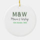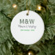 Monogram par grått grönt modern romantisk dejt julgransprydnad keramik