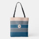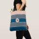 En vacker randig toteväska med nyanser av blå, grå och päron randigt mönster. Monogram med hennes initial.