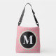 Söt reversibla pasteller mint grönt polka dots på rosans bakgrund. Anpassa med din inledande monogrammatiska text i vit text inuti den svarta cirkeln. Baksidan av väskan har ordalydelsen, ha en vacker dag. Lämna formulering, infoga en egen eller ta bort om du bara vill visa mönster-design med stor cirkel. Nya trendigets geometriska kvinnoväska mode under vilken säsong som helst. Originaldesign © TamiraZDesigns. www.zazzle.com/tamirazdesigns