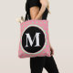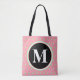 Söt reversibla pasteller mint grönt polka dots på rosans bakgrund. Anpassa med din inledande monogrammatiska text i vit text inuti den svarta cirkeln. Baksidan av väskan har ordalydelsen, ha en vacker dag. Lämna formulering, infoga en egen eller ta bort om du bara vill visa mönster-design med stor cirkel. Nya trendigets geometriska kvinnoväska mode under vilken säsong som helst. Originaldesign © TamiraZDesigns. www.zazzle.com/tamirazdesigns