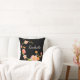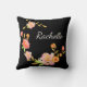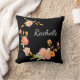Dekorativ kudde med en svart bakgrund med blommor av orange, rosa och grönt och en anpassningsbar första namn monogram
