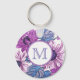 Monogram Purple and Blue Vintage Flower Art Nyckelring