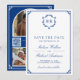 Monogram QR-kod Foto Collage Royalblå Bröllop Spara Datumet