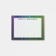 Fästande anteckningar med regnbåge i rand i lila, blått, akvafblått, grönt och gult. Anpassa med ditt namn eller monograminitialer med den enkla mallen. Teckensnitt färg, stil och storlekt teckensnitt är anpassade. Modern, chic och klassisk perfekt är den klibbiga tonen för vardagen.