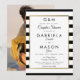 Med en klassisk svart-vitrandig bakgrund har denna eleganta bröllopspar-showerinbjudan en falsk guld-folie ram runt er par shower-detaljer i modern chic typografi och ert speciella foto på baksidan. Designad av Thisisnotme