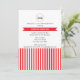 Monogrammade röda och vita stripade mönster-middagsinbjudningar. Växla rött och vitt rand.