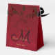 Monogram röd guld svart vinterpajasbox för gästmottagning för julbröllop. Blommönster personlig sötchoklad behandlar sötchoklad. Elegant, modernt, trendig, klassi, snyggt, vacker, chic, kulent metall. Upphovsrätt Marg Seregelyi Fotography.