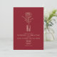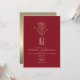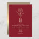 En djärv inbjudan från elegant bröllop med en djup röd bakgrund, minimal modern typografi och en förfinad illustration av ro i metalliska guld. Den här designen av kostym romantiska bröllop firande med lyxkontakt, perfekt för vinter-, fall- eller högtidliga kvällsevenemang. Koordinerar på ett utmärkt sätt mottagningsdekanter och stationär med guld-accinering.