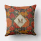 Monogram Red Orange Flowers and Daisys Brown Wood Kudde