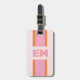 Travel in style with a personalized luggage tag that stands out from the crowd. Featuring your monogram in bold sans serif font with a striking drop shadow effect, this design is a true standout with its retro color palette that adds a touch of vintage charm. The vibrant pink and orange stripes in vertical orientation make it easy to spot your luggage, ensuring that your belongings are always identifiable, no matter where your adventures take you.