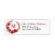 Den här returadressetiketten har en vacker vattenfärgsbild av en ljusröd andedräkt med monogrammet i mitten av blommigten. Ditt namn och adress överensstämmer med rött och svart på bildens höger.