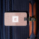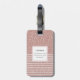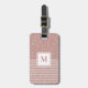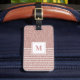 Eleganten på denna bagagebricka har en bakgrund av trendiget ro guld faux glitter som är accentuerad med en rand mönster. En vit låda, mitt på framsidan, erbjuder en anpassningsbar monogram. En annan vit ruta på baksidan innehåller anpassningsbar för ditt namn och din kontaktinformation.