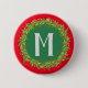 Anpassa den här julknappen med ditt enda monogram. Den här röda knappen och grönten är underbar för party och social.