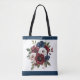 Älskar du blommor? Bär en tote-väska med detta vackra blomsterarrangemang på. Denna bukett innehåller röda, blå och vita blommor. En fin present till henne. Monogram med hennes initialer, namn eller valfri text.
