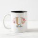 Monogram Rosa Blommigt Initial Brev U Två-Tonad Mugg