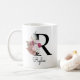 Monogram rosa Boho flickig blommig initial R Kaffemugg