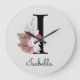 Monogram Rosa Boho Girly Blommigt Initial I Stor Klocka