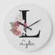 Monogram Rosa Boho Girly Blommigt Initial L Stor Klocka