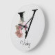 Monogram Rosa Boho Girly Blommigt Initial V Stor Klocka