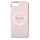 Ett fodral för söt, rosa och modern personlig med en quatrefoil mönster i bakgrunden. Lägg till ditt monogram och namn. Designad av Blackberry Boulevard.