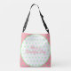 Reversibla pasteller med mynt grönt polka dots på rosa vit bakgrund. Grönten framför väskan har en stor cirkel att anpassa med den inledande monokulärgraditionen i svart text. Baksidan av väskan har ordalydelsen: Ha en vacker dag i rosa text. Lämna formulering, infoga en egen eller ta bort om du bara vill visa mönster-design med stor cirkel. Nya trendigets geometriska kvinnoväska mode under vilken säsong som helst. Originaldesign © TamiraZDesigns. www.zazzle.com/tamirazdesigns
