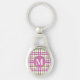 Monogram Rosa och Grönt Tartan Mönster Ovalt Silverfärgad Nyckelring