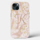 Monogrammad Personlig rosa och vit marmor mönster med guld glitter iphone case