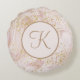 Monogram Rosa och vit Marble Swirl Guld Glitter Rund Kudde