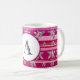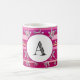 Vacker blomsterinspirerad design med vita blommor och rosa ränder.Monogrammärkt mugg för dina speciella ögonblick med din speciella te- eller kaffetid.