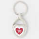 Monogram rött hjärta på vitt twisted heart silverfärgad nyckelring