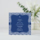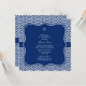 Monogrammat royal blått med chevron mönster inbjudningskort för möhippa.